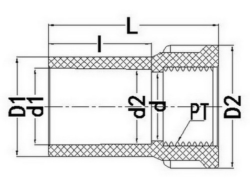 SIZE d1 d2 I D1 D2 d L PT(牙/寸)