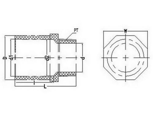 SIZE d1 d2 I D d L W PT(牙/寸)
